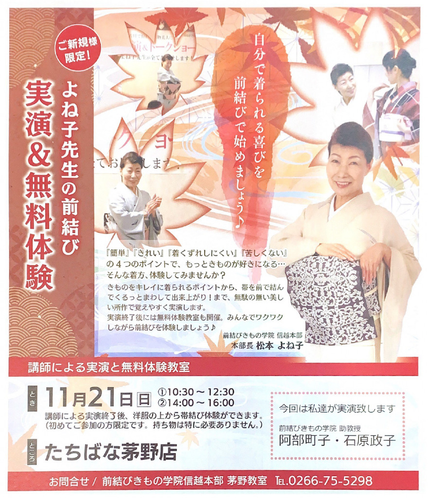 【前結び】着付教室のお知らせ【実演&体験会】 |たちばな茅野店|