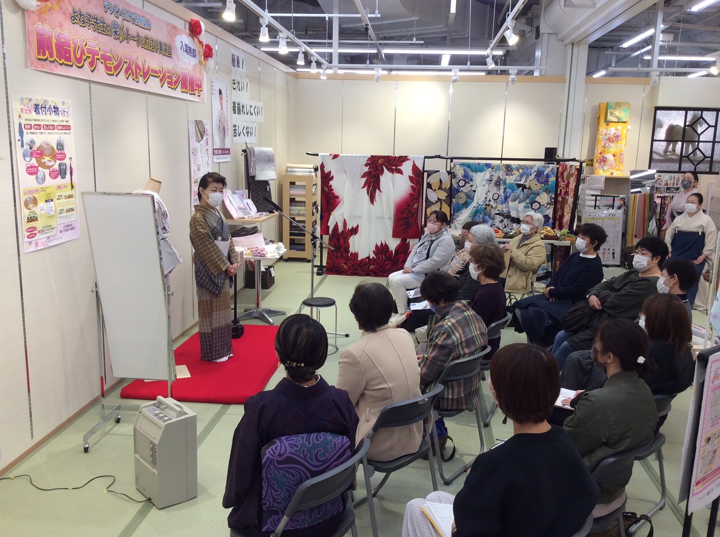 前結びの秘密、4K、補正のアレコレが発表されました。「こんなに簡単に着付できるなんて目からウロコです」とお客様よりお言葉もいただき大好評でした。