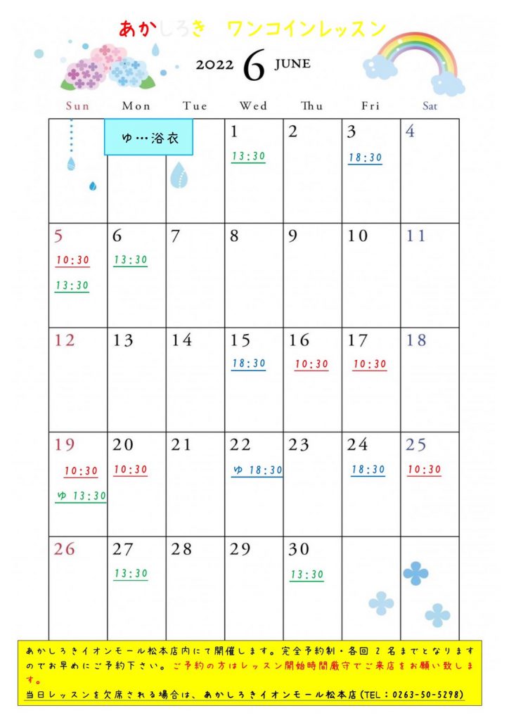 6月ワンコインレッスンのお知らせ!