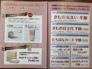 着付け無料や小物、クリーニングが割引となるカードでございます。