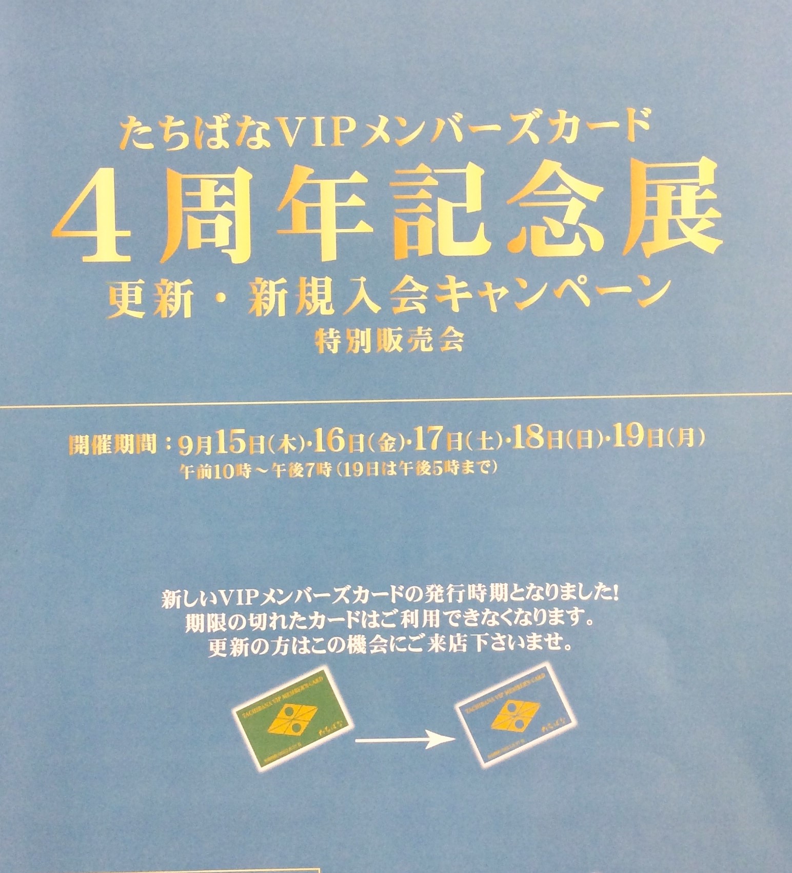 おかげさまで、たちばなVIPメンバーズカードは発行から4周年を迎えさせていただきました。