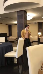 奥に居る着物の男性は
