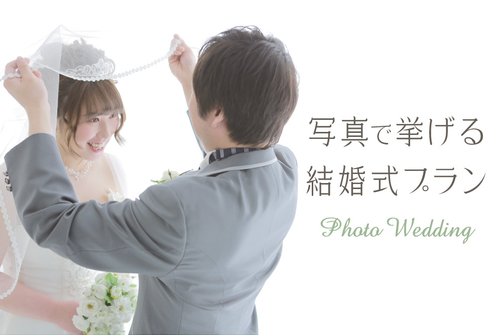 2人きりのスタジオでヴェールアップや指輪交換などの挙式シーンができる「フォトウェディングプラン」の他、