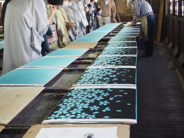糸を紡ぎ、染め、織り上げるまでの工程を