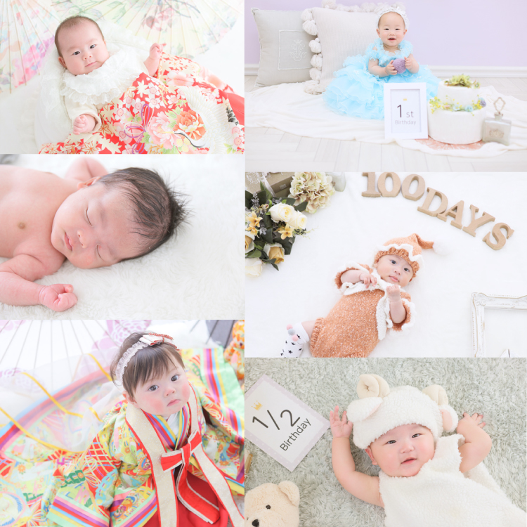 初節句の他、新生児(ニューボーン)フォト・お宮参り・百日祝い(お食い初め)・ハーフバースデー・1歳バースデーなどなど…お子様の記念日に合わせた様々なプランをご用意しております!