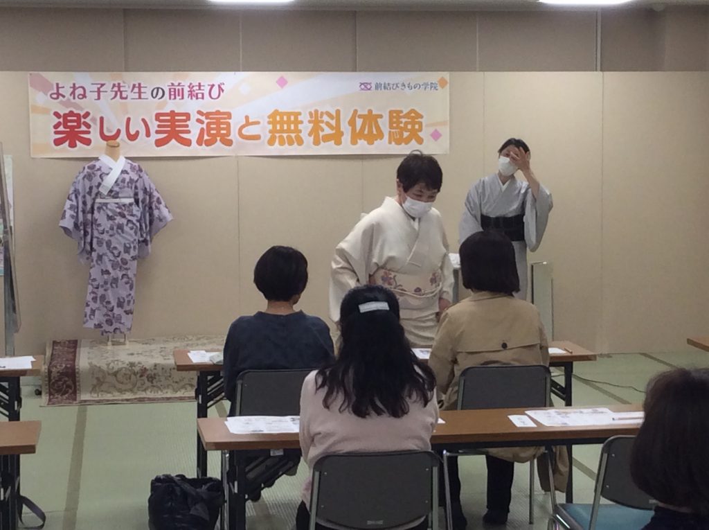 たちばな佐久店では、4/30(日)に行なわれた前結び着付け教室デモンストレーションを行いました!