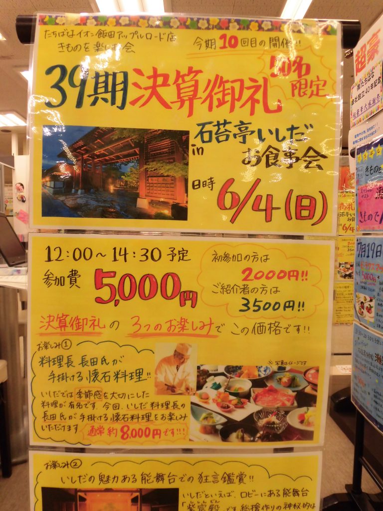 次回は6月4日(日)「石苔亭いしだ」でのお食事会と能舞台での狂言鑑賞も予定していますのでたくさんの方のご参加心よりお待ちしております。