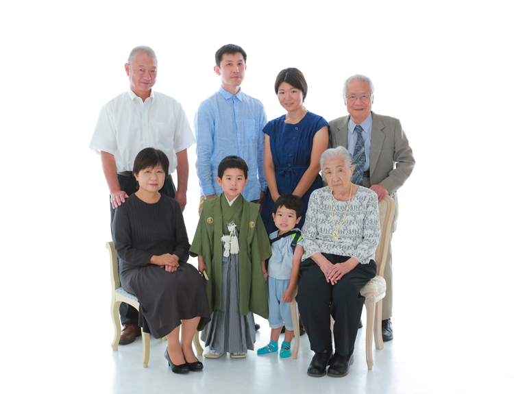 自分の家族4人+祖父母(自分の親)2人+自分の兄弟2人と撮影