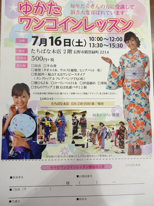 【長野市】 ゆかたワンコインレッスン |着物たちばな長野本店|