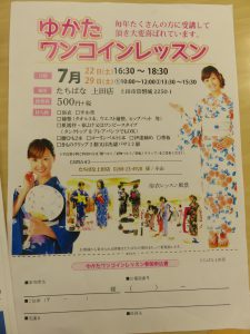 たちばな上田店ではそんなみなさまのために7月に、ゆかたワンコインレッスンを開催致します!
