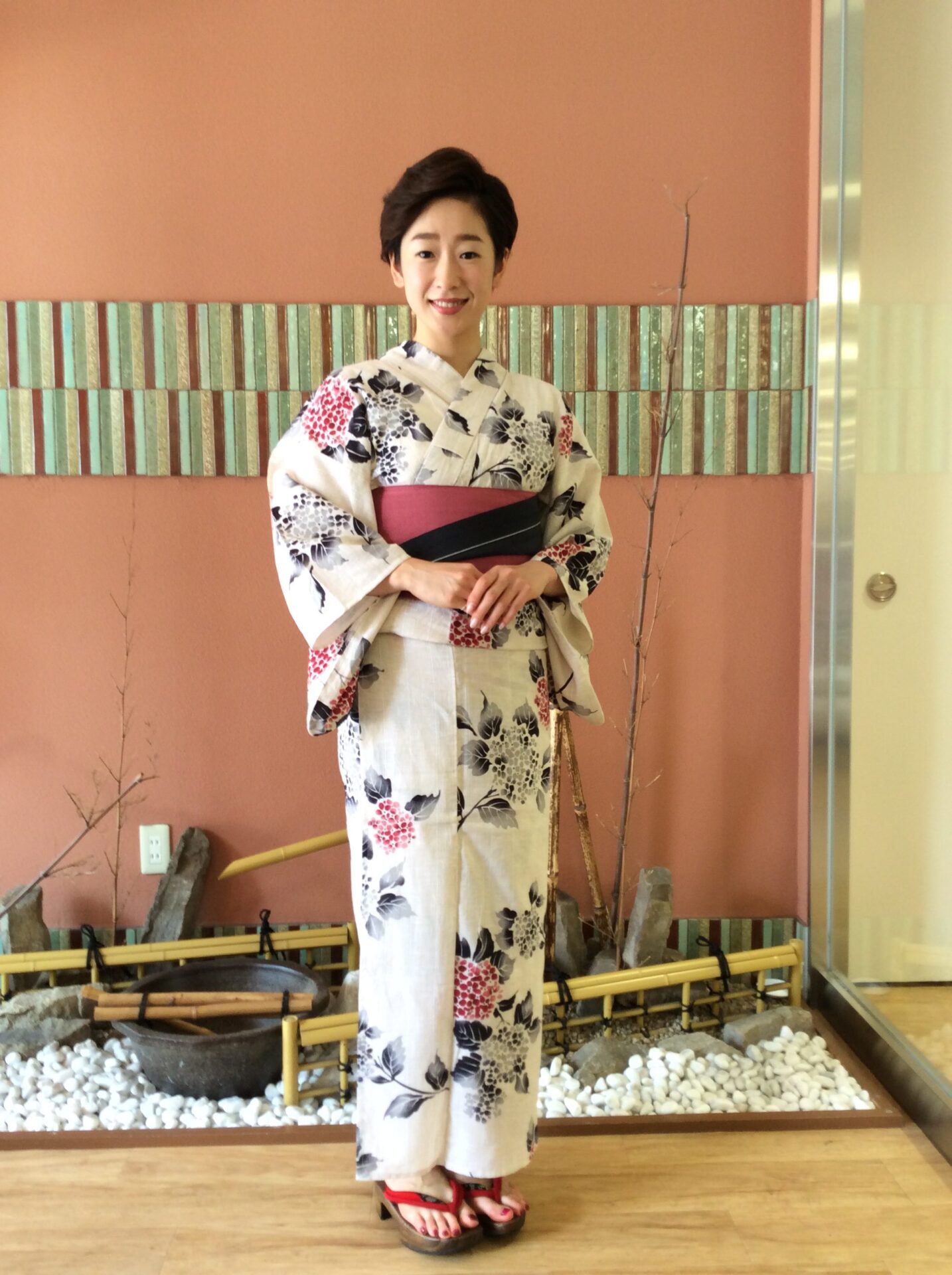 先日、お着付けをお手伝いさせていただきました!(^^)!アジサイの中継に行かれる前でした!お忙しい中ありがとうござました!!