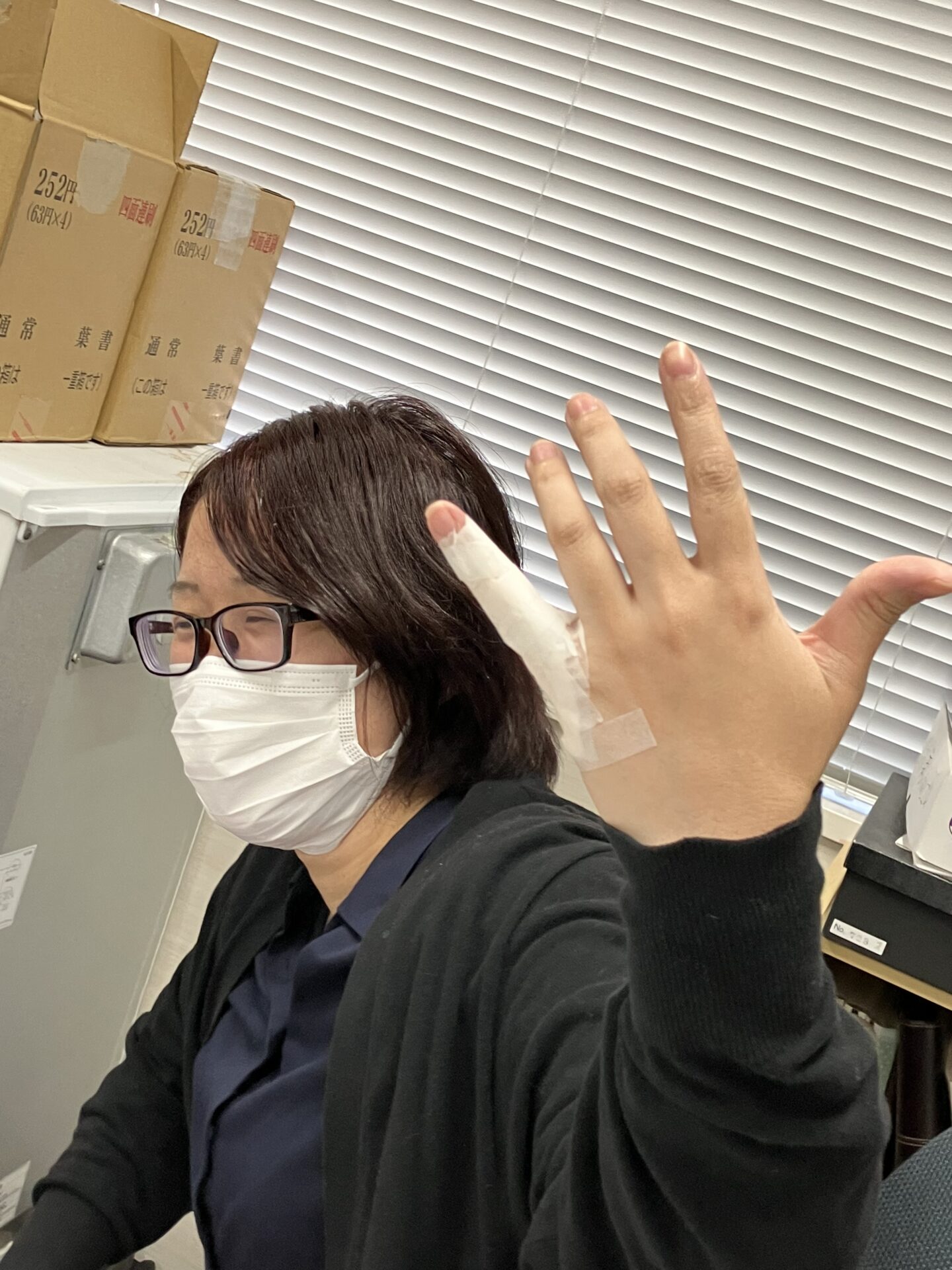 スタッフ水野さんの小指が痛い |たちばな飯田店|
