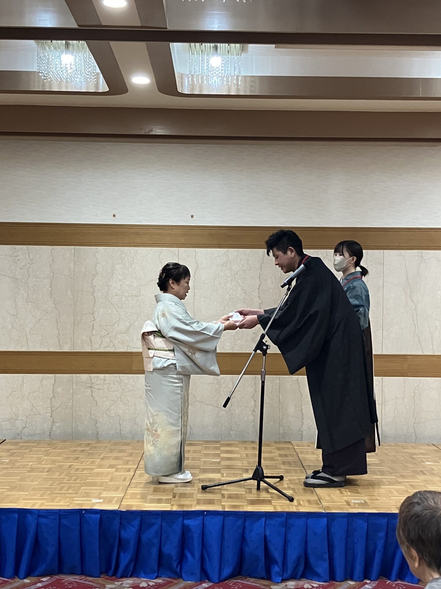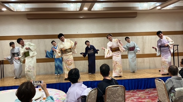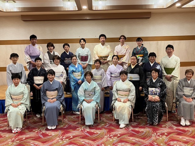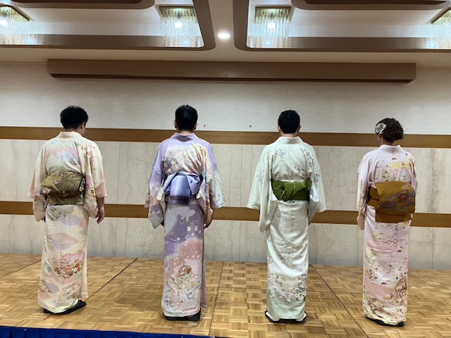 男性社員、講師の先生方による帯結びの披露、お食事、着付け教室長期表彰式とあっという間に時間が流れていきました!