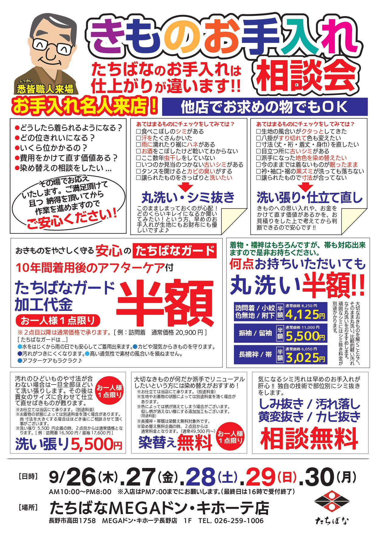 きものお手入れ相談会 |たちばなMEGAドン・キホーテ長野店|