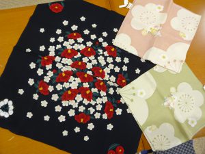 風呂敷もかわいい古典柄、花柄だとなおさらウキウキしたものです。