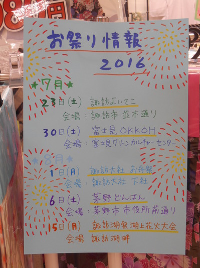 ここで7月、8月の茅野・諏訪周辺のお祭り情報をお届け☆*
