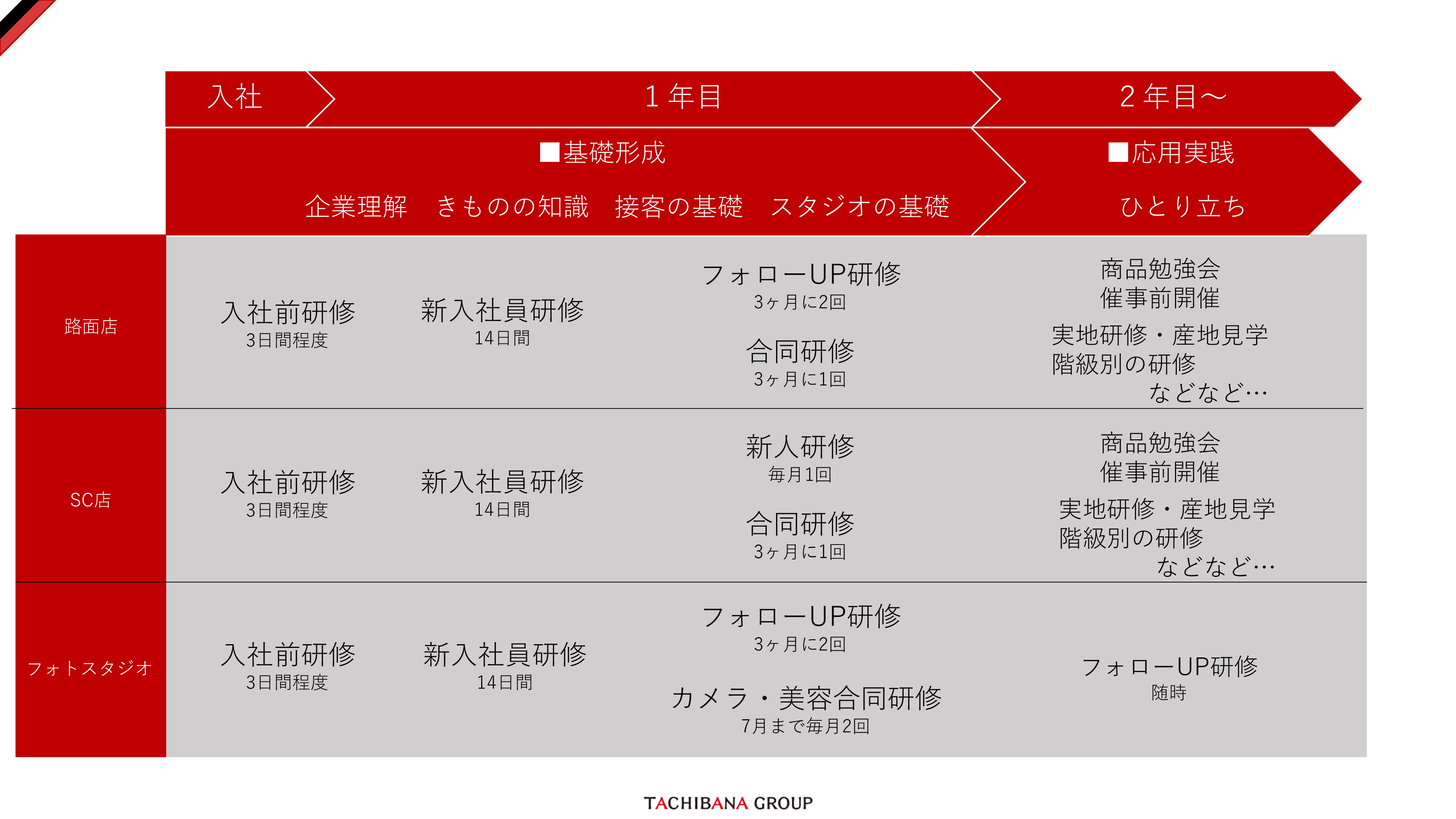 カメラの扱い方を学ぶ研修、撮影アシスタントの研修、七五三撮影の研修…ゴールが明確な社内研修から、社外研修の参加まで学びのタイミングは幅広くあります。店長以上のクラスになると海外研修も!