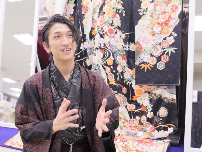 第6事業部ではほぼ毎日着物を着て接客をするのですが、ファッションが大好きな僕にとって着物をオシャレに着こなしながらお仕事をすることがすごく楽しいです!