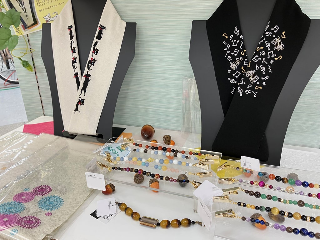 オシャレな半衿や帯留、羽織紐などお出掛けが楽しくなる小物が充実。オシャレが大好きなスタッフがコーディネートします!