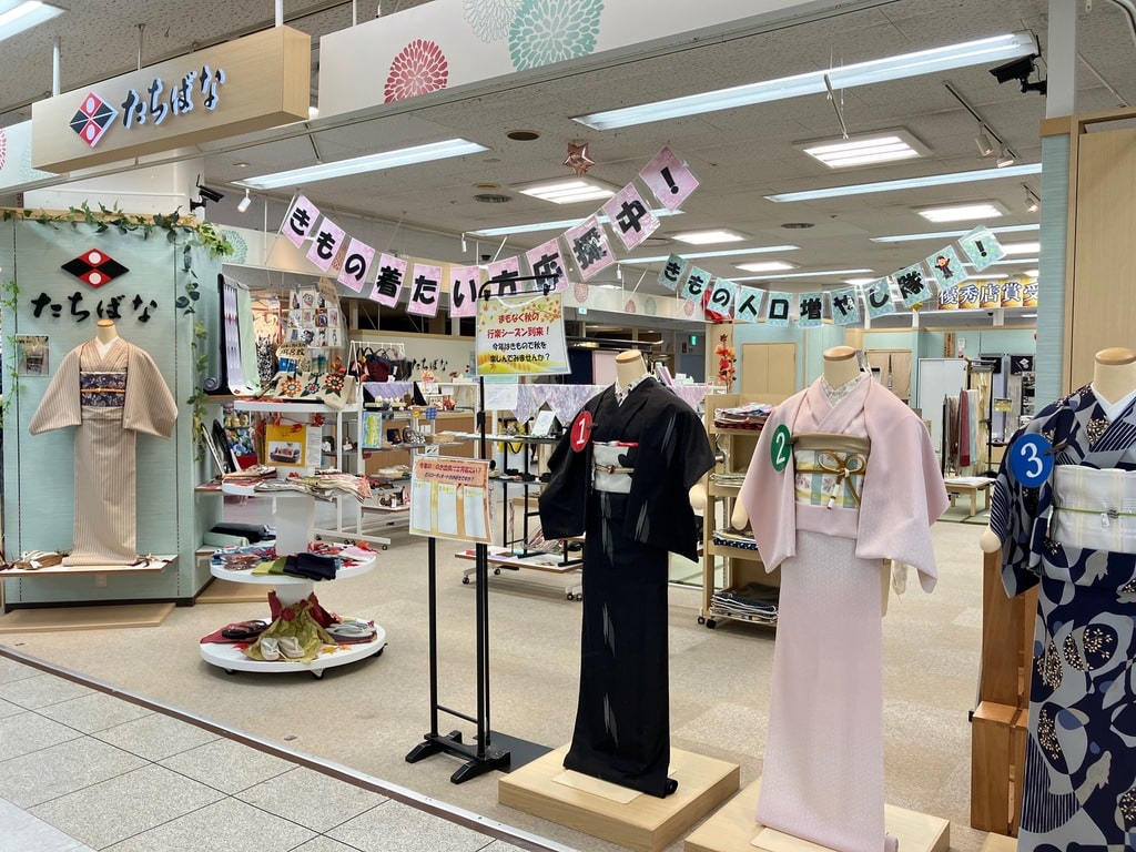 たちばなの呉服店で唯一、スタッフが全員女性のお店です。みんな着物が大好きで思い思いの着物を着て、皆様をお迎えします。
