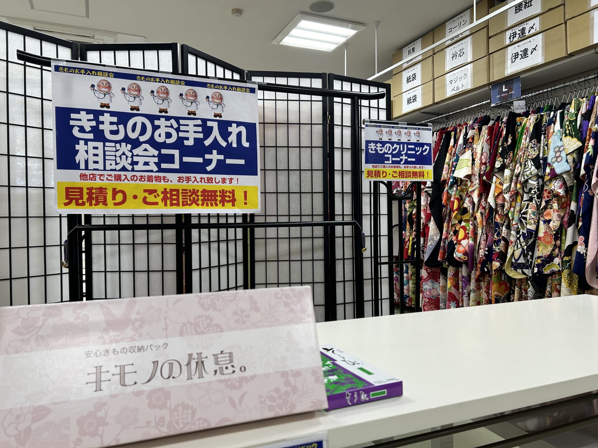 いつでも着物お手入れクリニック相談会開催中!!お着物の事をいつでも聞けるようにきものクリニックの相談場所を開設しております。気軽にお声をお掛け下さいませ。