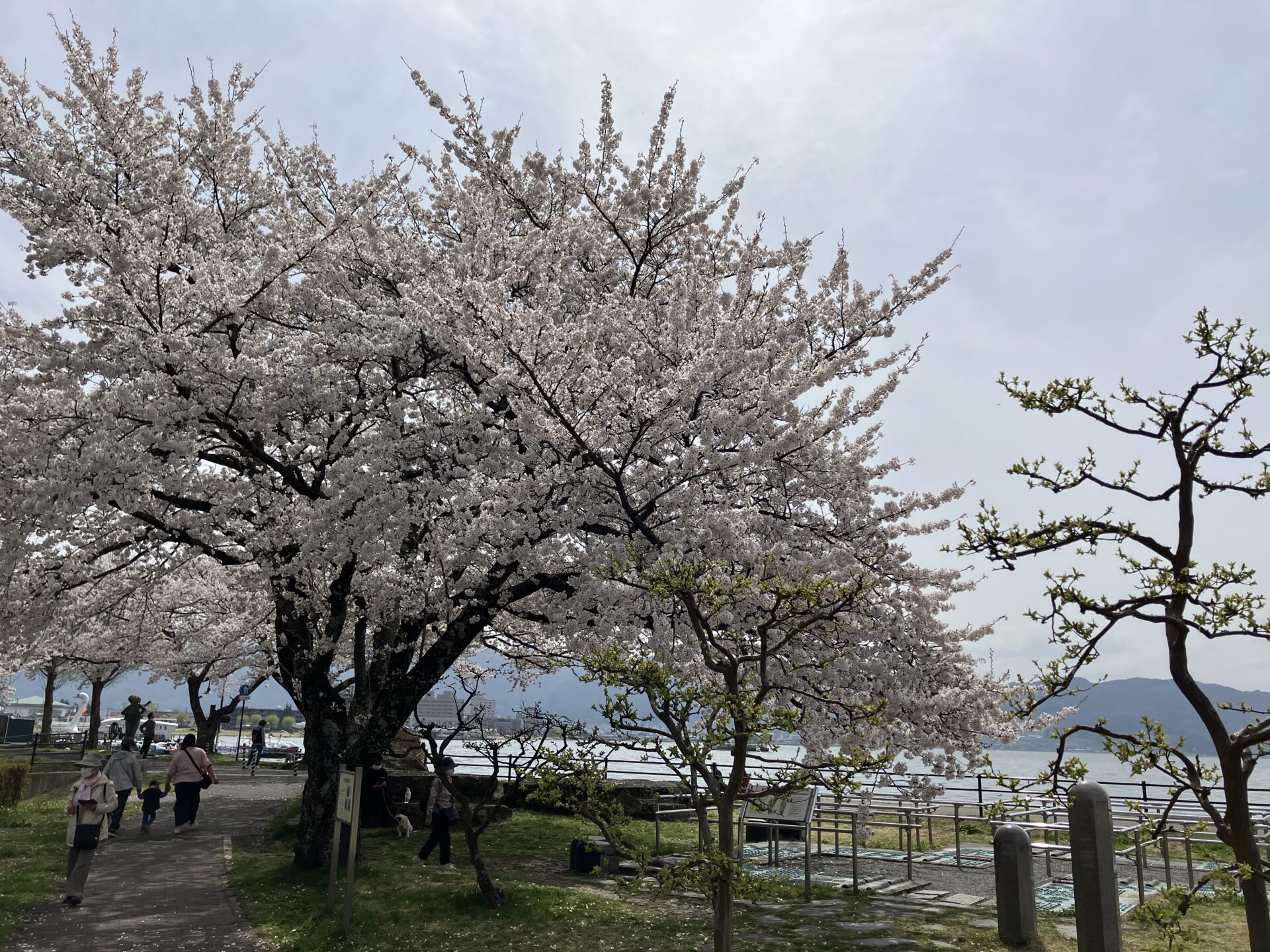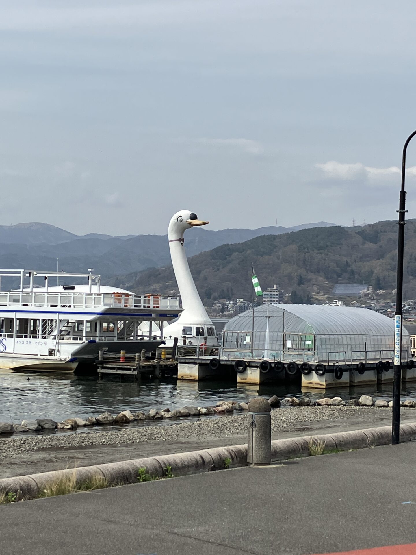 でかいスワンボートに諏訪湖をバックに桜もたくさん撮ってしまいました!