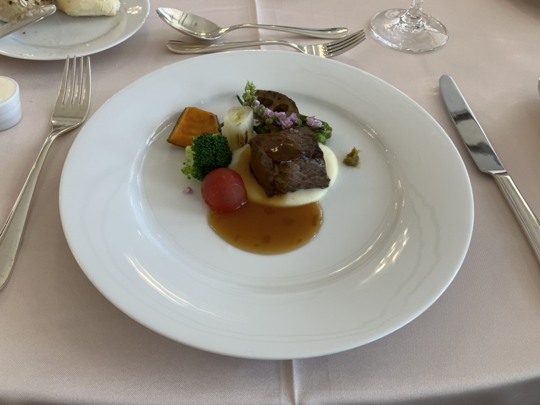 メインの魚料理か肉料理を選べて、お客様お好みで皆様選んでいました。